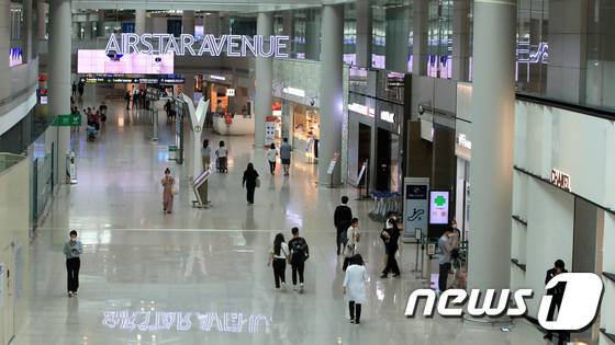 (인천공항=뉴스1) 구윤성 기자 = 26일 인천국제공항 제1여객터미널 내 면세구역에서 여행객들이 항공기 탑승 대기실로 이동하고 있다. 2022.6.26/뉴스1