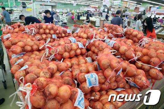 (서울=뉴스1) 황기선 기자 = 26일 오후 서울 서초구 농협 하나로마트 양재점에 농산물이 진열돼 있다.