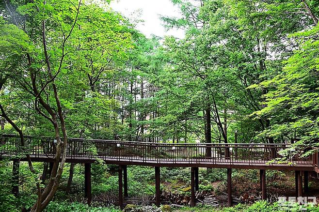 방대한 크기에 숲속 데크 길이 계속 이어져 있는
