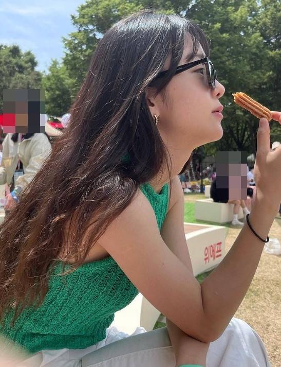 사진 속 송소희는 초록색 민소매를 입고 페스티벌을 즐기고 있다. 한복을 입었을 때와 또 다른 매력이 눈길을 사로잡는다.