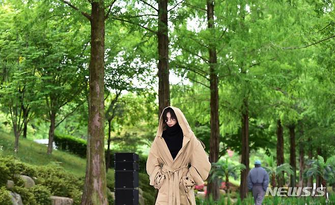[대구=뉴시스] 이무열 기자 = 26일 오후 대구 달서구 계명대학교 성서캠퍼스 메타세쿼이아길에서 재생(play back)을 주제로 한 미술대학 패션디자인학과 제24회 졸업작품 패션쇼 리허설을 하고 있다. 2022.06.26. lmy@newsis.com