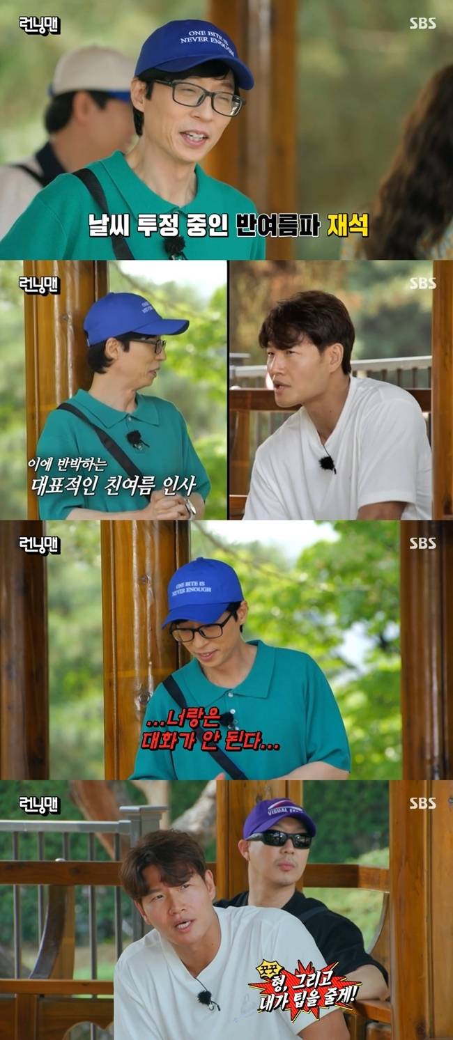 그러자 김종국은 "형 여름이니까 덥죠"라고 유재석을 할 말 없게 만들었다.