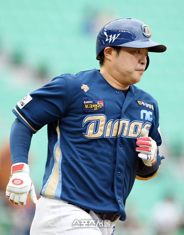 NC 권희동이 26일 인천 SSG랜더스필드에서 열린 2022 KBO리그 SSG와의 경기 4회초 무사 SSG 선발 이태양을 상대로 솔로 홈런을 치고 베이스 러닝을 하고 있다. 권희동의 시즌 2호 홈런. 2022. 6. 26.