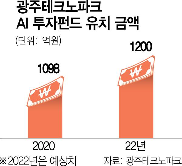 앞서 광주테크노파크는 2020년 총 1098억 원 규모의 AI 1차 투자펀드를 조성하는 성과를 냈다. 현재 광주에 소재한 펠레메드(30억 원), 씨앤큐어(20억 원) 등 11개 기업을 대상으로 AI 투자펀드에서 직접투자 173억 원, 연계투자 483억 원 등 총 656억 원이 투자됐다. 추가로 올 연말까지 2~3개 기업에 약 50억 원의 직접투자가 진행될 예정이다.