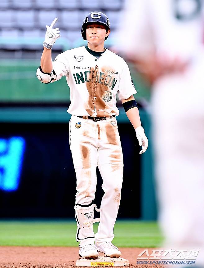 2022 KBO리그 SSG 랜더스와 NC 다이노스의 경기가 26일 인천 SSG랜더스필드에서 열렸다. 4회말 2사 SSG 박성한이 안타를 날린 뒤 환호하고 있다. 인천=박재만 기자 pjm@sportschosun.com/2022.06.26/