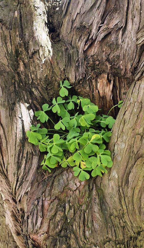 클로버를 품고 공존하는 고목이 행복해 보입니다.