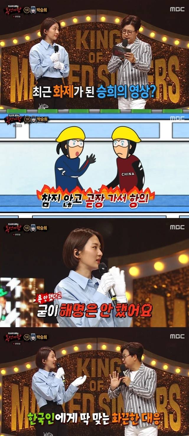 특히 김성주는 "박승희 씨가 과거 중국 선수의 반칙으로 넘어진 뒤, 중국 선수에게 욕하는 영상이 최근에 화제가 됐다. 욕을 좀 하냐"고 물었다. 이에 박승희는 "정말 진심으로 욕을 절대 안 하는데, 굳이 해명은 안 했다. 너무 속 시원해하시니까"라고 답했다.