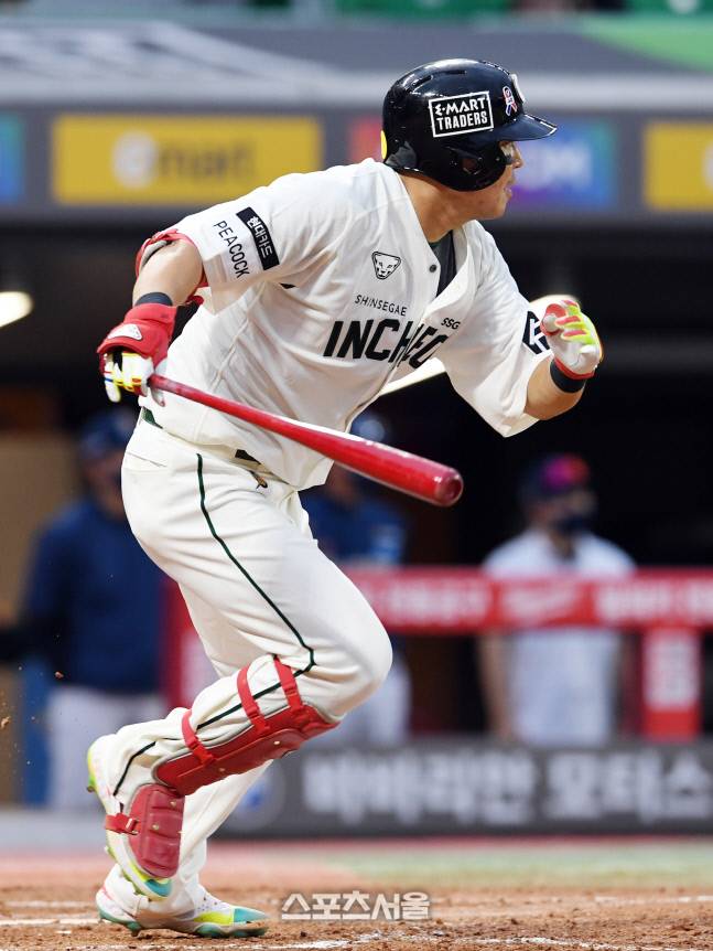 SSG 한유섬이 26일 인천 SSG랜더스필드에서 열린 2022 KBO리그 NC와의 경기 7회말 2사 만루 상황에서 NC 투수 김영규를 상대로 2타점 적시타를 치고 있다. 한유섬은 동점 솔로 홈런을 포함해 4타점으로 맹활약을 펼쳤다. 2022. 6. 26.