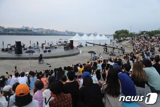 (서울=뉴스1) = 지난 25일 서울 서초구 반포 한강공원에서 6·25전쟁 72주년을 기념해 열린 625 625 버스킹 행사를 찾은 시민들이 다양한 공연을 즐기고 있다. (국가보훈처 제공) 2022.6.26/뉴스1