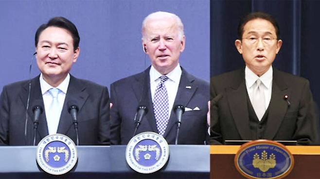 윤석열 대통령과 조 바이든 미 대통령, 기시다 후미오 일본 총리 간 첫 3자 대면으로 한미일 사이 4년 9개월 만에 이뤄지는 정상회의입니다.