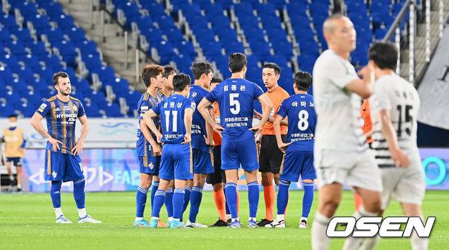 울산 현대 선수들이 경기 종료 후에도 주심에게 항의하고 있다. 2022.06.26 / foto0307@osen.co.kr