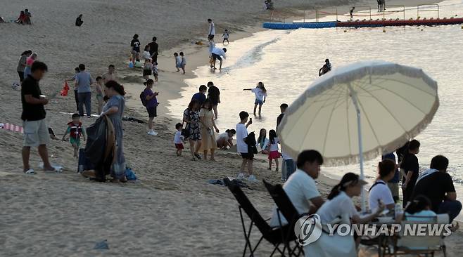 (강릉=연합뉴스) 유형재 기자 = 강원 강릉에 열대야 현상이 나타난 가운데 26일 저녁 강릉시 안목해변에는 많은 시민이 나와 무더위를 식히고 있다. 2022.6.26