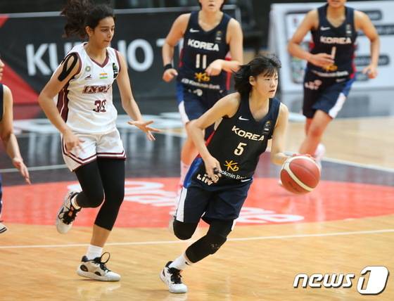 (서울=뉴스1) = 26일 요르단 암만에서 열린 2022 국제농구연맹(FIBA) U16 아시아여자농구선수권대회 인도와의 경기에서 대한민국 양인예가 공격을 시도하고 있다. 이날 대한민국은 101대 40으로 승리를 거뒀다. (대한민국농구협회 제공) 2022.6.26/뉴스1
