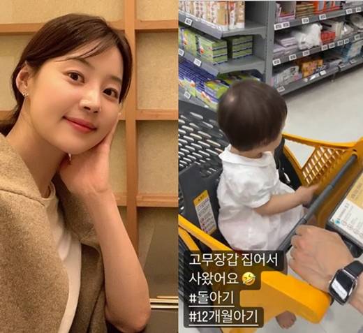 이어 한지혜는 "고무장갑 집어서 사 왔어요 #돌아기 #12개월아기"라는 글을 덧붙여 이날의 쇼핑 템 하나를 공개했다.