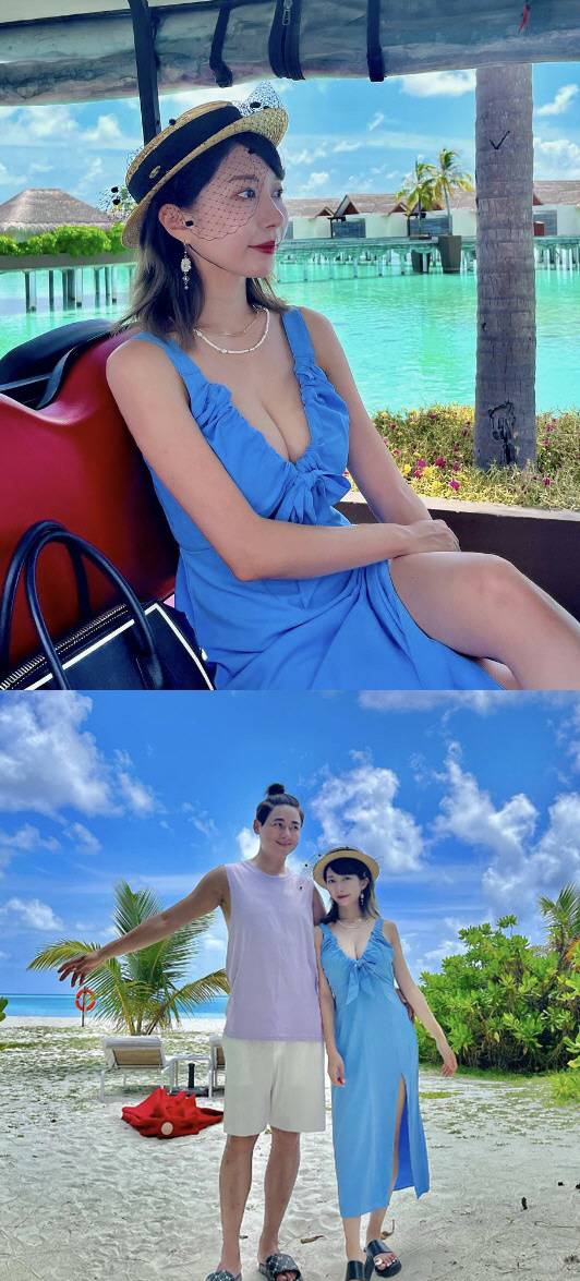 '♥이지훈' 아야네, 신혼여행서 파격 노출..깊게 파인 가슴골 '41kg 글래머'