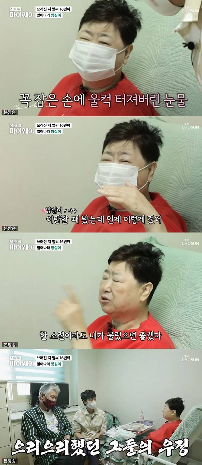 뇌경색 투병 중인 가수 방실이가 이동준, 일민 부자를 만나 그리움의 눈물을 흘렸다.