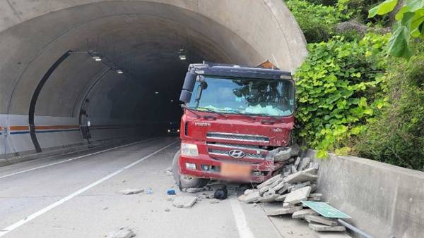 강원 동해고속도로서 화물차가 터널 입구 들이받아