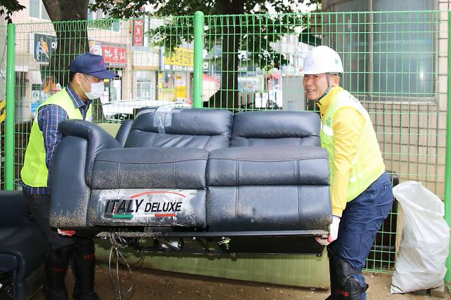 지난 24일 오후 2시 대전 중구 산성동. 박용갑 대전 중구청장(65)이 중구 소속 환경관리요원 6명과 함께 폐기물 수거 작업에 나섰다(사진). 박 구청장은 이날 오후 내내 소파·가구 등 대형 폐기물을 직접 들어 수거차량에 싣는 작업을 진행했다.
