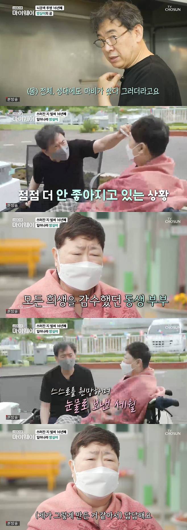 26일 방송된 TV조선 '스타다큐 마이웨이'에서는 16년째 투병 중인 방실이의 근황이 공개됐다.