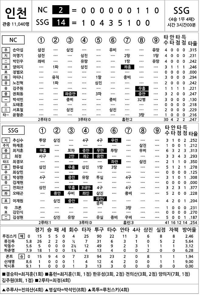 [2022 KBO리그 기록실] NC vs SSG (6월 24일)
