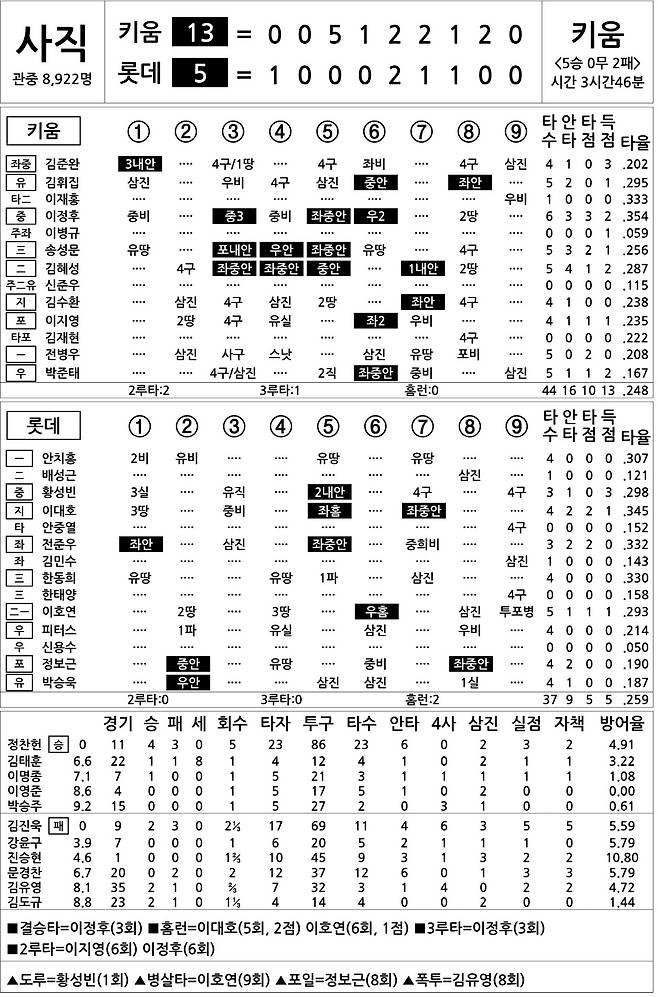 [2022 KBO리그 기록실] 키움 vs 롯데 (6월 25일)