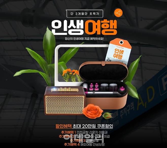 인터파크는 오는 7월 1일부터 9월 30일까지 트립 부스터 2.0 상품을 포함한 다양한 여행 상품을 소개하는 ‘인생여행’ 기획전을 진행한다. 트립 부스터 2.0 상품 예약 시에는 주요 신용카드 더블 할인 혜택과 I-Point 2만점, 인천공항 라운지 이용권(5만 원 상당)을 선착순 제공한다. 추첨을 통해 3명에게 브리츠 블루투스 스피거, LG틔운 미니, 다이슨 에어랩 등을 경품으로 지급하며, 예약 인원이 많을수록 당첨 확률이 높아진다.