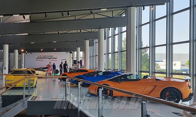 지난달 직접 방문한 람보르기니 공장은 역사 그 자체였다. 들판 한가운데 위치한 16만㎡ 규모의 공장은 브랜드 역사와 창업자인 페루치오 람보르기니의 열정을 한 눈에 볼 수 있는 기술 박물관(MUDETEC)을 앞세우고 있다. 2001년 개관한 이 박물관은 브랜드 탄생을 알린 350 GT와 첫 미드십 엔진 제품 미우라, 디자인의 상징이 된 쿤타치, 람보르기니 첫 SUV LM002 등의 주요 제품과 세스토 엘레멘토, 센테나리오, 시안 FKP 37 등의 한정판 등을 볼 수 있다. 브랜드 역사에 비해 전시 규모는 작지만 평소 미디어로만 접할 수 있는 명차들을 오롯이 만날 수 있어 '박물관'이란 명패 값을 톡톡히 한다.
