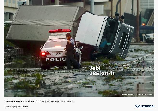 '카트리나 280km/h' '제비 285km/h' 등 자동차의 속도가 아닌 자연재해 당시의 풍속을 활용함으로써 이산화탄소 증가로 더욱 거세지고 있는 기후 변화의 심각성을 전달하고 미래 세대를 위한 친환경 움직임의 필요성을 강조했다.