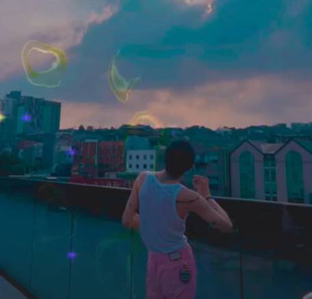 사진에는 푸른 하늘이 지고 있는 몽환적 분위기 속에서 뒷모습을 공개했다.