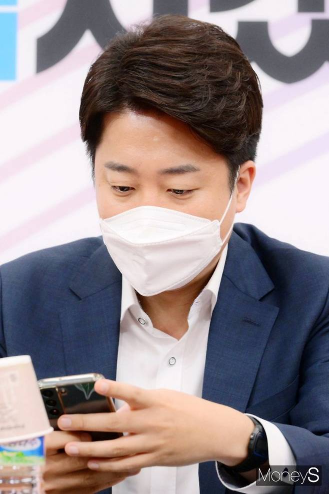 [머니S포토] 당내 갈등 속 휴대전화 바라보는 '이준석' 대표