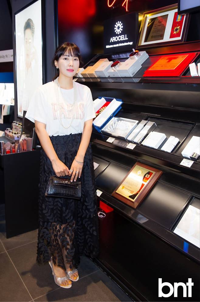 뷰티&라이프 인플루언서 엠마 송지선이 아로셀 섹션에서 포토타임을 갖고 있다.