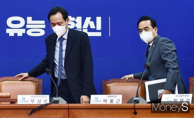 [머니S포토] 민주당 비대위 입장하는 우상호·박홍근