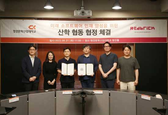 레드브릭이 미래 소프트웨어 인재 양성을 위해 청강대와 산학협력 MOU를 맺었다.