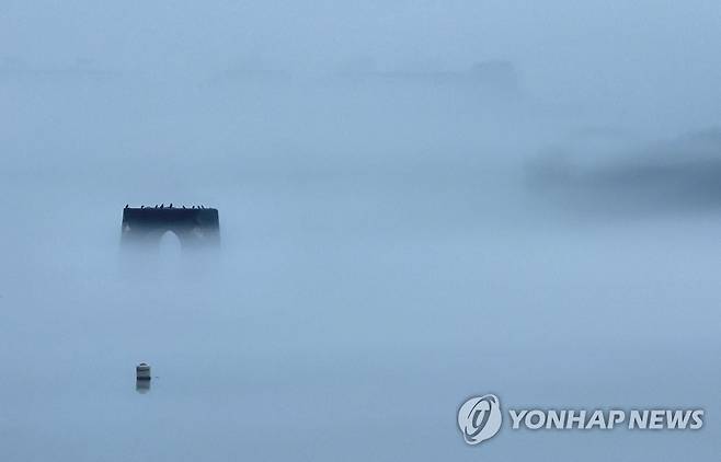 (춘천=연합뉴스) 양지웅 기자 = 전국 곳곳에 장맛비가 내리는 27일 강원 춘천시 소양강 위로 물안개가 피어오르고 있다. 2022.6.27