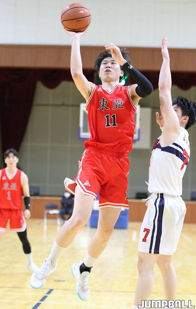 동아고는 26일 홈 코트에서 열린 2022 한국 중고농구 주말리그 경상권역 예선 나흘째 경기서 라이벌 부산중앙고를 67-57로 꺾었다.
