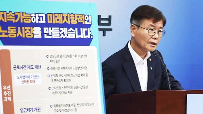 지금은 노동자가 한 주에 52시간 넘게 일하면 사업주가 처벌을 받는데, 바쁜 주에는 52시간에 구애 받지 않고 몰아서 일하고, 덜 바쁜 주는 일을 덜해, 한 달 전체로 볼 때 한 주 평균 52시간을 맞춰 보자는 겁니다. 그러면서 이 장관은 "주 단위 초과 근로 관리 방식은 주요 선진국 중 우리나라가 유일하다. 해외 주요국은 노사 합의에 따른 선택권을 존중하는 것을 기본으로 하고 있다"고 했습니다.