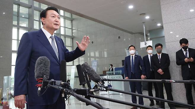 - “잘 좀 쉬셨습니까?” 윤석열 대통령 부부, 기내서 깜짝 간담회…'첫 순방' 3박 5일 나토 일정 시