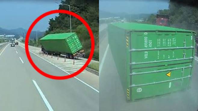 [영상] 추락한 컨테이너 낙하물에 죽을 뻔했는데..화물차주 측 "수리비 달라"