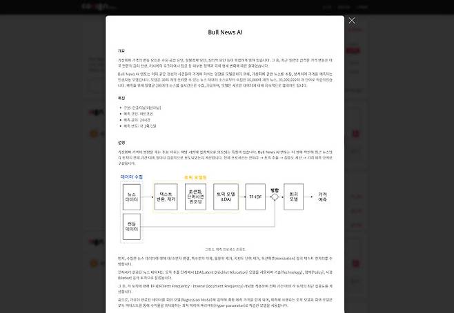 코싸인 사이트의 기존 디지털 자산 정보 사이트와 구분되는 점은 뉴스 제공 등에 그치지 않고 데이터 중심의 투명한 정보 제공이다. AI 분석에 사용된 알고리즘의 상세한 설명은 물론, 수익률과 적중률이 마이너스가 되더라도 결과를 모두 공개한다.