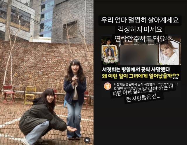 서동주는 어머니 서정희의 가짜 사망 뉴스를 다룬 유튜버에 "사람 아픈 걸로 돈벌이 하는 이런 사람들은 참.."라며 불쾌한 심경을 드러냈다.