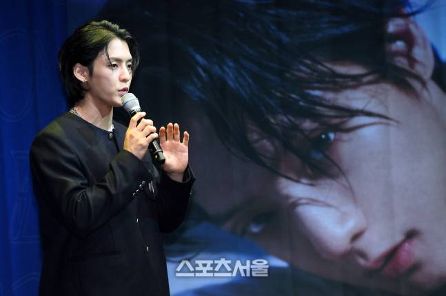 비투비 이민혁(HUTA)이 27일 서울 용산구 블루스퀘어 카오스홀에서 진행된 정규 2집 ‘BOOM’ 발표 기념 기자간담회에서 사회자의 질문에 답을 하고 있다. 2022. 6. 27.