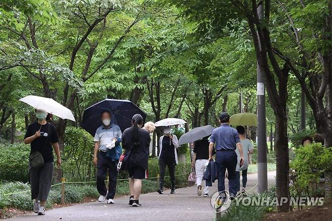 사진은 27일 서울의 한 공원에서 반려동물과 산책하는 시민. 2022.6.27