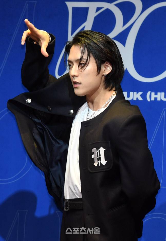 비투비 이민혁(HUTA)이 27일 서울 용산구 블루스퀘어 카오스홀에서 진행된 정규 2집 ‘BOOM’ 발표 기념 기자간담회에서 포인트 안무를 소개하고 있다. 2022. 6. 27.