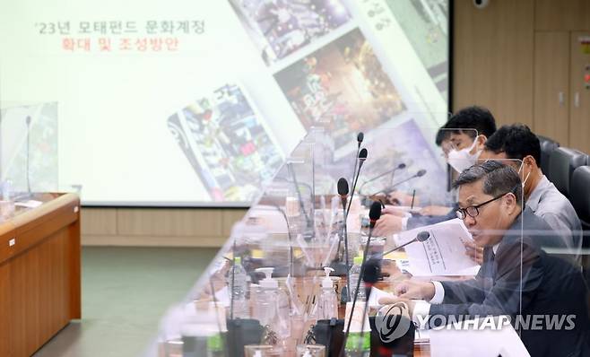 (서울=연합뉴스) 전병극 문화체육관광부 1차관이 27일 서울 서초구 한국벤처투자 회의실에서 열린 모태펀드 문화계정 투자운용사 간담회에서 발언하고 있다. 2022.6.27 [문화체육관광부 제공. 재판매 및 DB 금지]