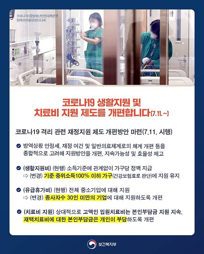 코로나19 생활지원 및 치료비 지원 제도 개편