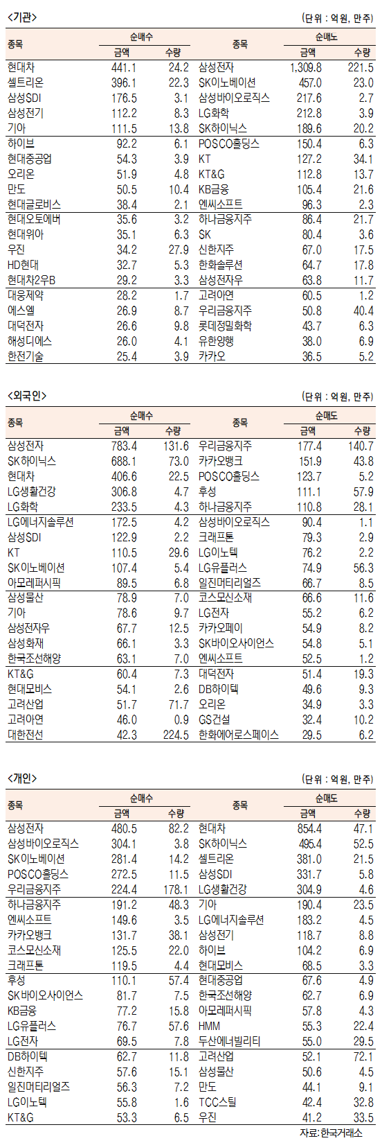 - [표]주간 유가증권 기관·외국인·개인 순매수·도 상위종목(6월 20일~24일)