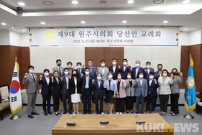 강원 원주시의회(의장 유석연)는 27일 의회 모임방에서 제9대 원주시의회 의원 당선인 교례회를 개최했다고 밝혔다.