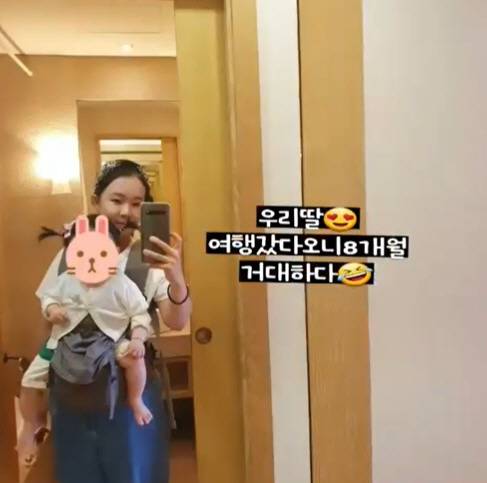 박민정은 27일 자신의 인스타그램 스토리에 "우리 딸. 여행 갔다 오니 8개월. 거대하다"라는 글과 함께 사진을 게재했다.