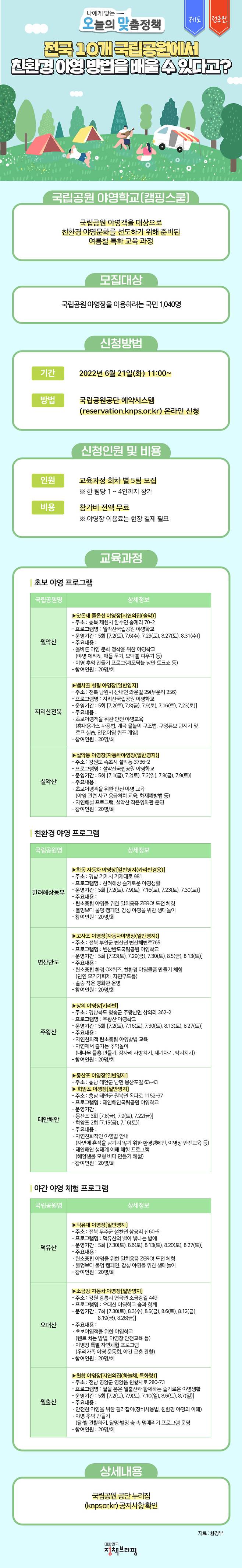 [오맞! 이 정책] "국립공원서 친환경 야영법 배우실 분!"..참가비 전액 무료