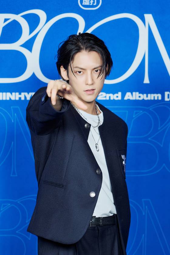 Lee Min-hyuk of boy band BTOB, also known by his rapper alias Huta, poses during Monday’s press conference for his second-full length album “Boom” at Blue Square in Yongsan District, central Seoul. The K-pop idol-turned-rapper's new album comes after three and a half years, during which he also served his mandatory military service.